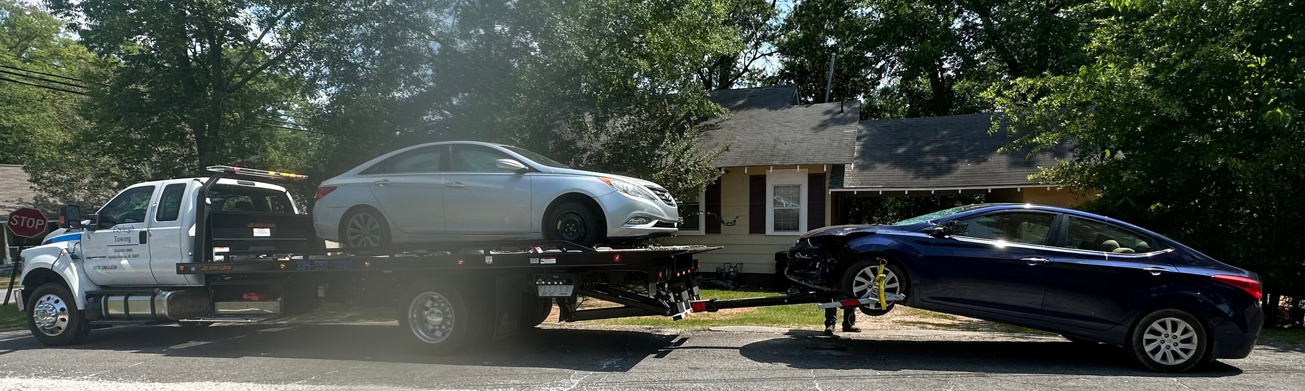 Towing of standard passenger vehicles like cars and small SUVs, typically for breakdowns or accidents.
